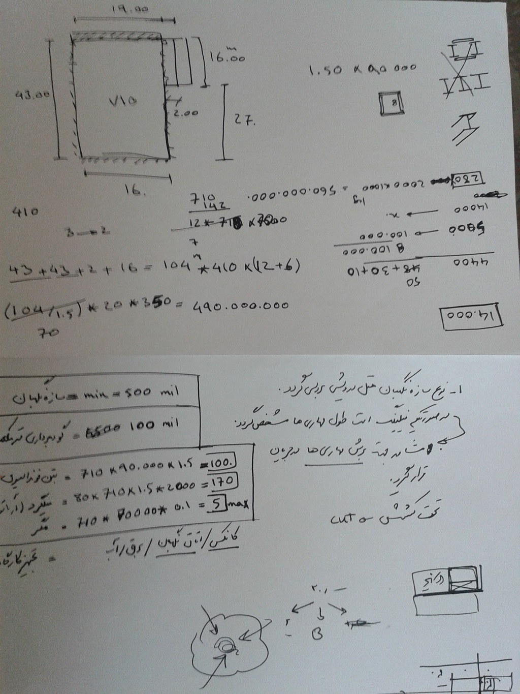 هزینه اجرای فونداسیون به مساحت ۷۱۰ متر مربع و ضخامت ۱.۵ متر: سیصد میلیون تومان.
